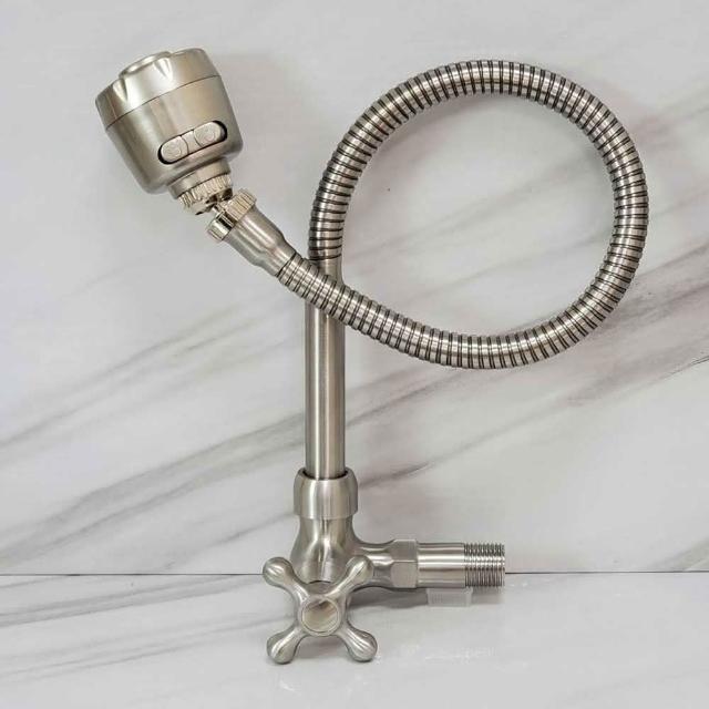 蝴蝶衛浴蝴蝶衛浴~LF無鉛認證 304不鏽鋼牆壁單冷龍頭.無鉛龍頭.廚房水龍頭.側開十字把手.萬向水龍頭.自由栓.