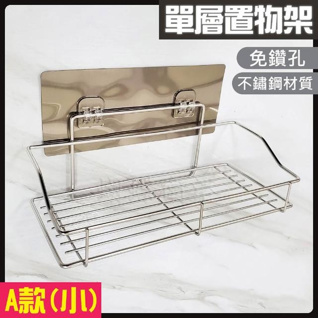 蝴蝶衛浴A款-小不鏽鋼 免鑽孔 單層置物架浴室廚房收納好幫手!免鑽牆收納架.壁掛架.瀝水架