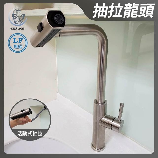 蝴蝶衛浴304不鏽鋼【無鉛廚房龍頭】LF無鉛認證.冷熱混合.抽拉檯面龍頭