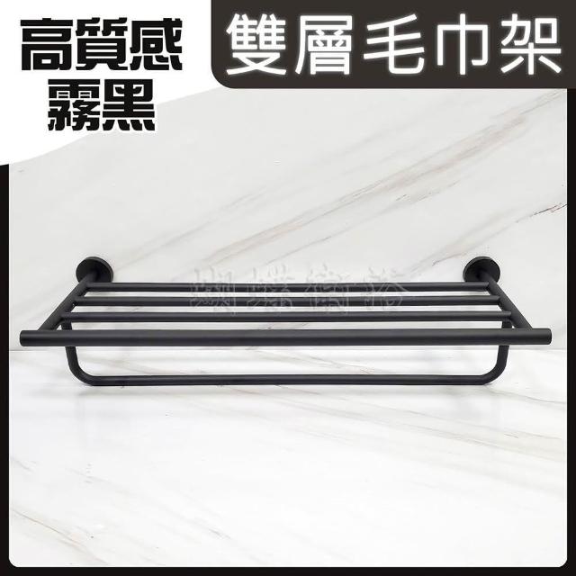 蝴蝶衛浴蝴蝶衛浴~304不鏽鋼 霧黑 雙層毛巾架(高級款).浴巾架.置衣架.霧黑毛巾架.黑色浴巾架.置物架.毛巾桿