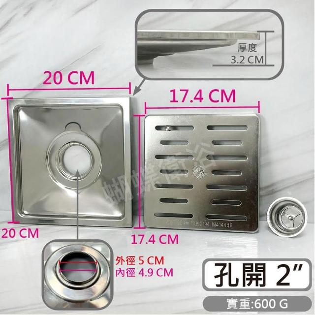蝴蝶衛浴阿水師 台製不鏽鋼20X20CM 地板落水頭ST水門.2吋排水孔.防蟲防臭.地排.地上排水
