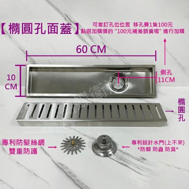 蝴蝶衛浴台製 現貨 橢圓孔面蓋 - 10x80cm阿水師正304不鏽鋼集水槽.長條型落水頭防臭.防蟑.可客訂