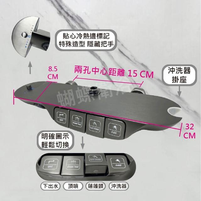 蝴蝶衛浴灰黑特殊色 多功能花灑組花灑淋浴組.浴室花灑.淋浴花灑龍頭組.頂噴花灑.四種出水模式花灑.水龍頭