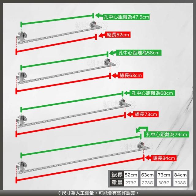 蝴蝶衛浴蝴蝶衛浴~304不鏽鋼【單桿毛巾架(圓桿)-總長52cm】重磅拉絲.四種長度.鑽牆款.貼片款