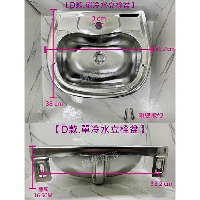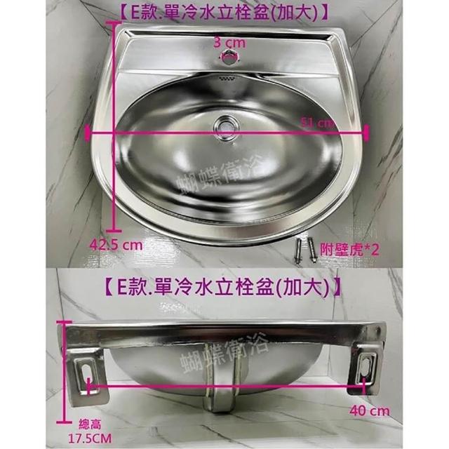 蝴蝶衛浴台製304面盆 E加大單冷立栓盆不銹鋼ST面盆.不鏽鋼臉盆.浴室面盆.ST面盆