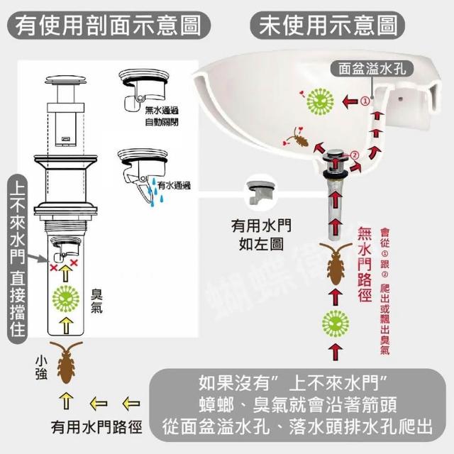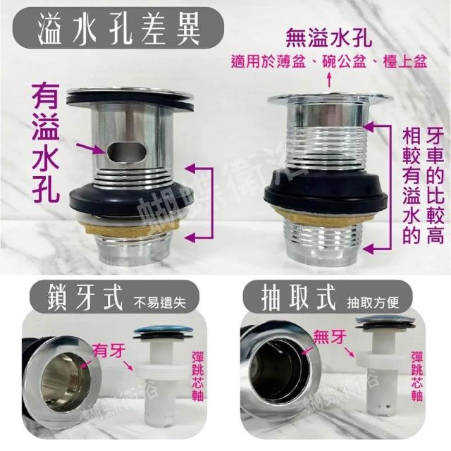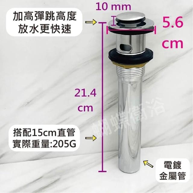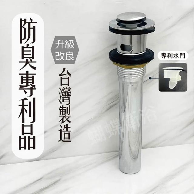 蝴蝶衛浴按壓落水頭(管30cm)專利防臭水門.台製.防蟑螂防臭味.抽取式.按壓落水頭.彈跳落水頭.排桿.有溢.無溢