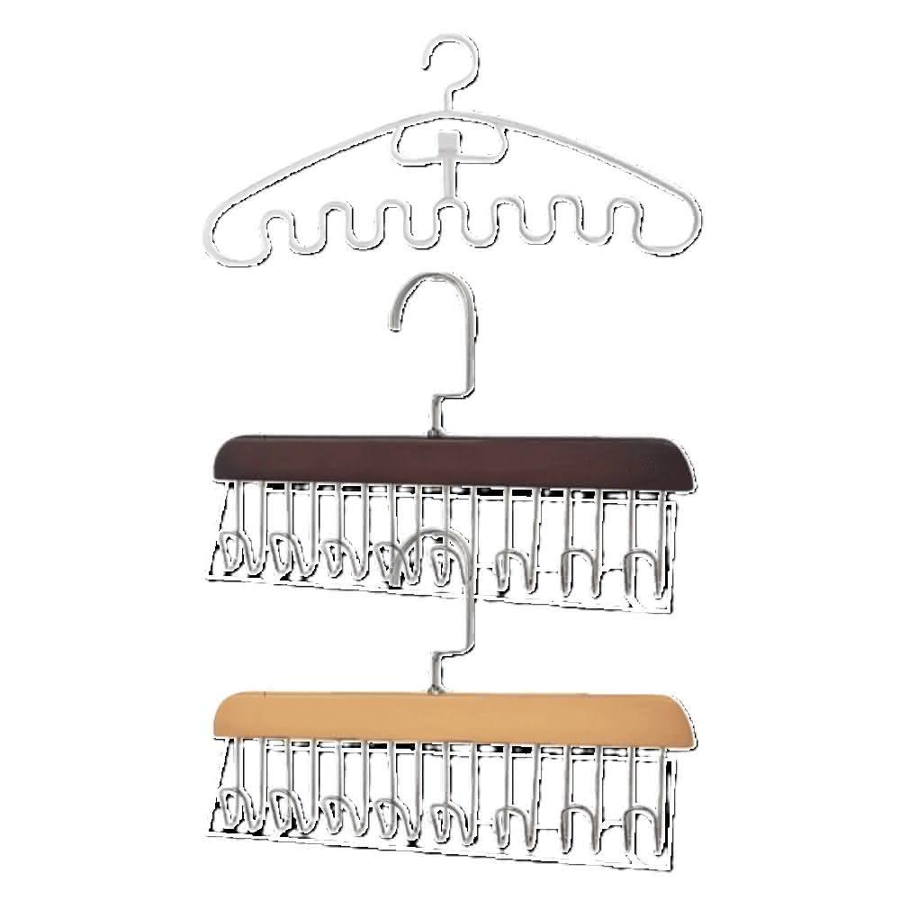 一架多排掛勾,衣物整齊排列
