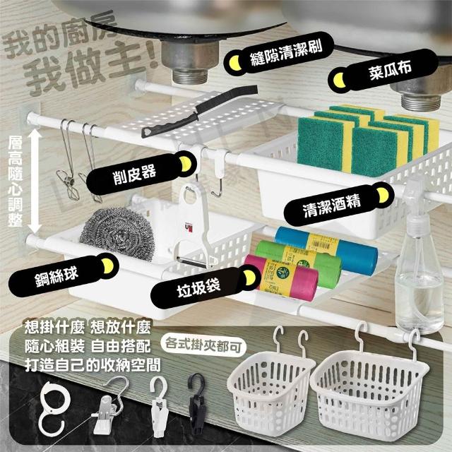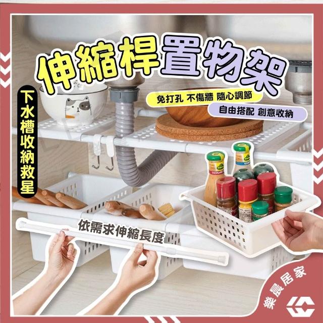樂晨居家 置物架 伸縮桿置物架 日式免打孔置物籃