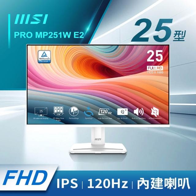 MSI 微星PRO MP251W E2 美型螢幕 25型 FHD/IPS/120Hz/內建喇叭/TÜV 護眼