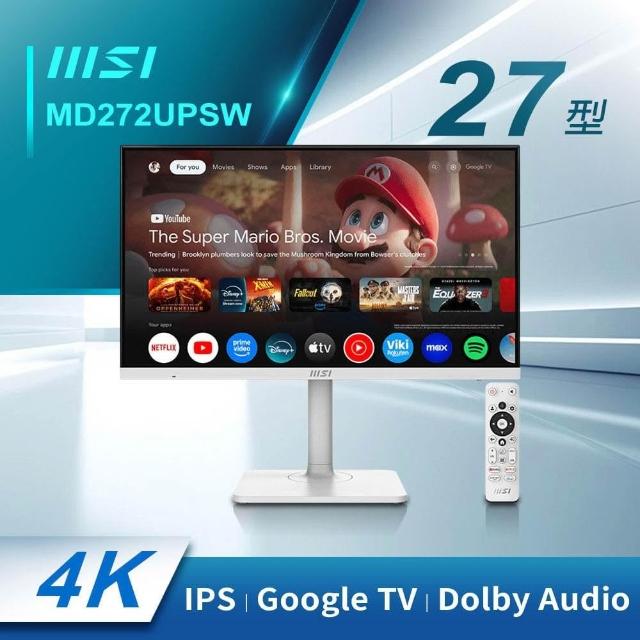 MSI 微星Modern MD272UPSW 聯網美型螢幕 27型 4K/Google TV/Dolby Audio/Type-C