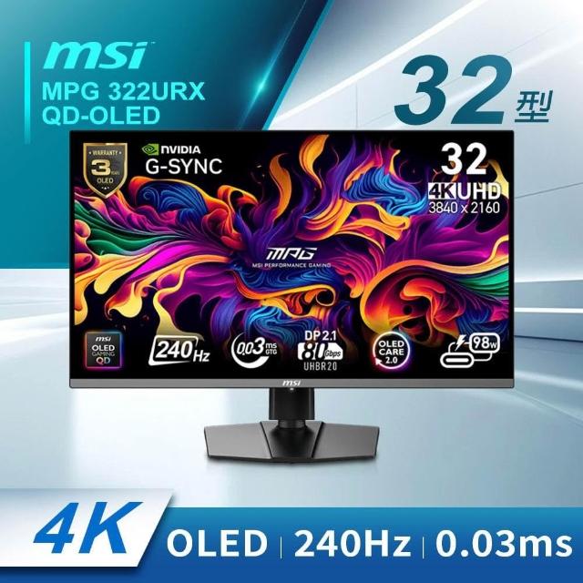 MSI 微星MPG 322URX QD-OLED 電競螢幕 32型 4K/OLED/240Hz/DP2.1a/0.03ms