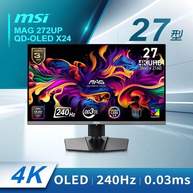 MSI 微星MAG 272UP QD-OLED X24 電競螢幕 27型 QD-OLED/4K/240Hz/0.03ms