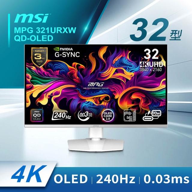 MSI 微星MPG 321URXW QD-OLED 電競螢幕 32型 QD-OLED/4K/240Hz/0.03ms/Type-C