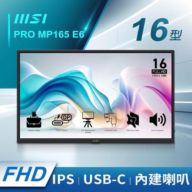 MSI 微星PRO MP165 E6 可攜式螢幕 16型 FHD/IPS/內建喇叭/L型線材/三腳架螺孔設計