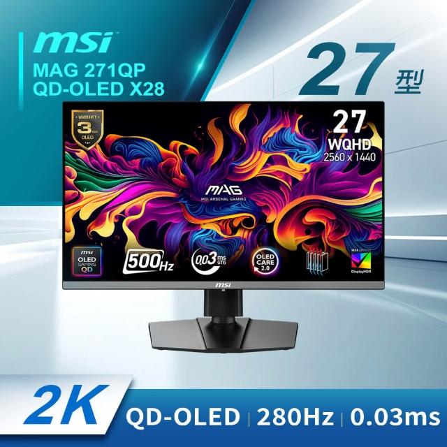 MSI 微星MAG 272QP QD-OLED X50 電競螢幕 27型 2K/500Hz/0.03ms/Type-C