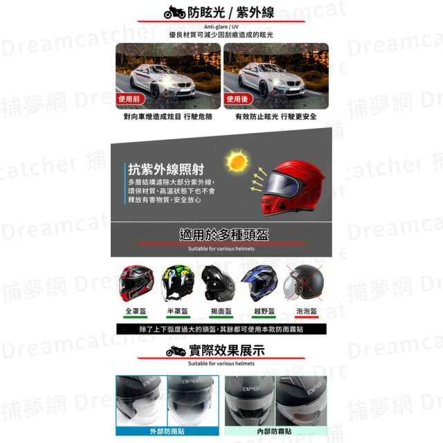 捕夢網安全帽防雨膜(安全帽防霧貼片 防雨膜 安全帽防霧 安全帽鏡片防水 防霧貼片 安全帽鏡片貼防霧)