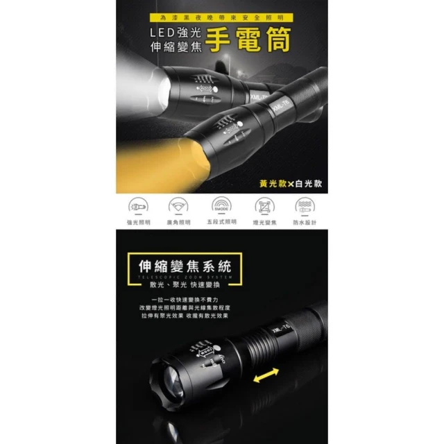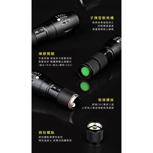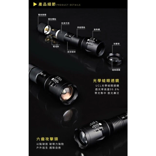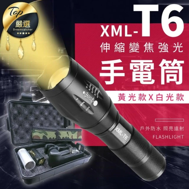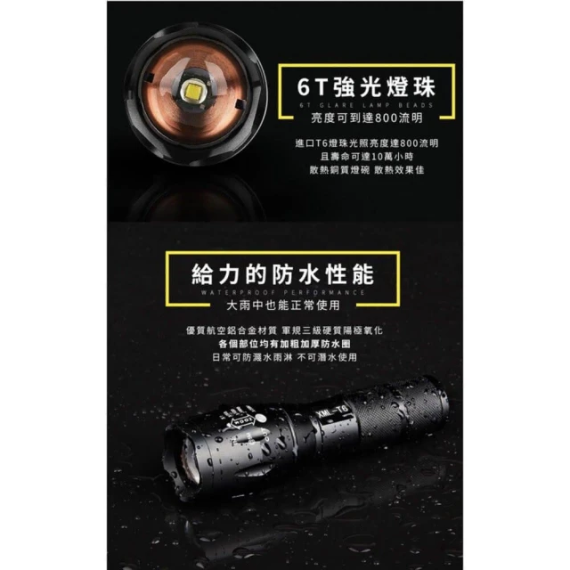 捕夢網T6強光手電筒(豪華組 手電筒 led手電筒 腳踏車燈 手電筒強光 迷你手電筒 露營燈)