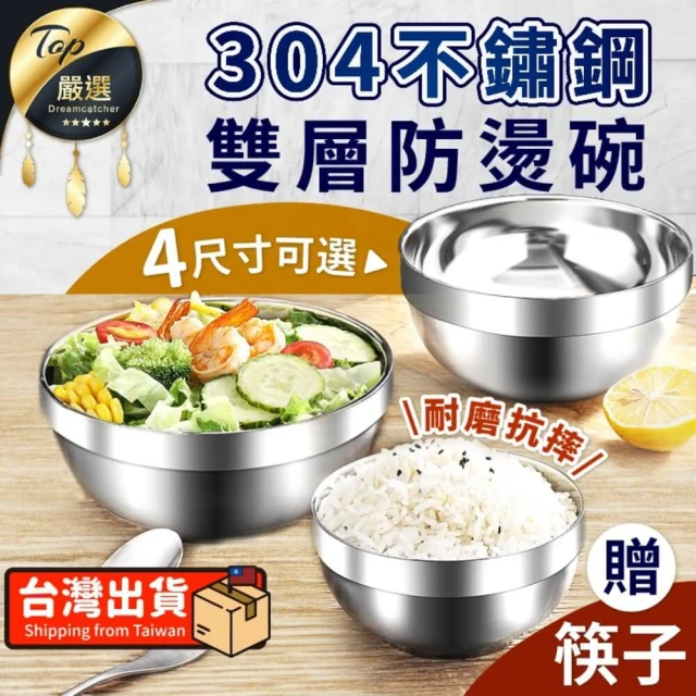 捕夢網304不鏽鋼碗送筷子 不鏽鋼碗 大碗公 隔熱碗 碗 不銹鋼碗 白鐵碗 鐵碗 露營碗雙12 1212