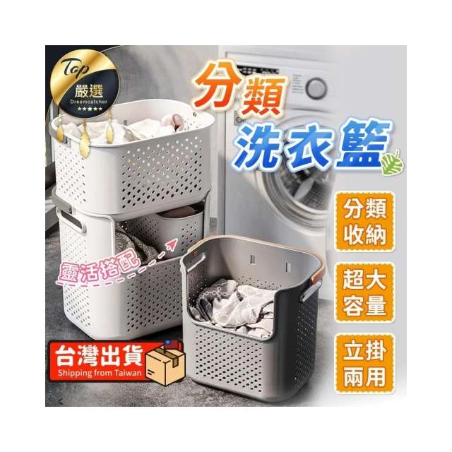 捕夢網可立可掛洗衣籃(髒衣籃/分類洗衣籃/籃子/洗衣機置物架/雙層洗衣籃)