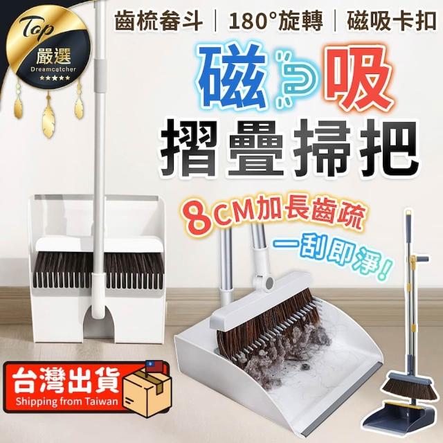 捕夢網品質高規格磁吸折疊掃把 掃把 掃具 掃把組 掃把畚箕組 磁吸式 摺疊畚斗 家用掃把 磁吸掃把 折疊掃把