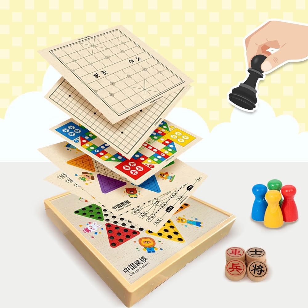 捕夢網多合一棋盤 益智桌遊 跳棋 象棋 五子棋 親子桌遊