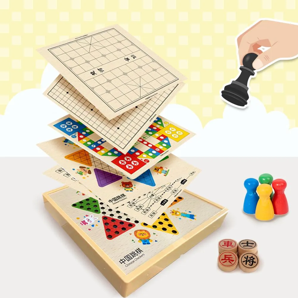 捕夢網多合一棋盤 益智桌遊 跳棋 象棋 五子棋 親子桌遊