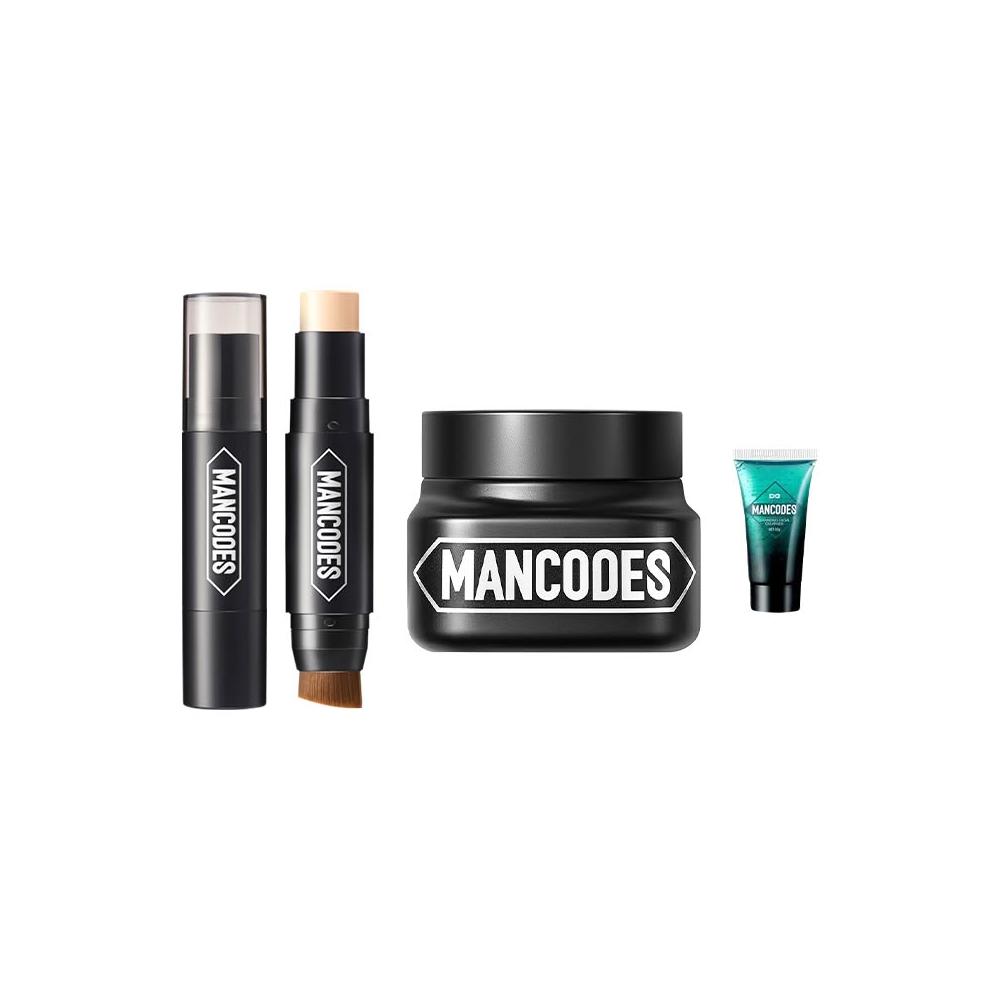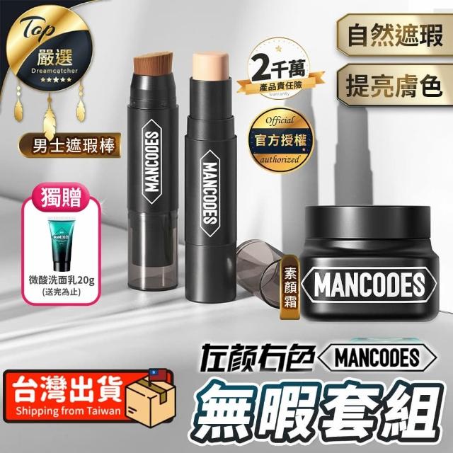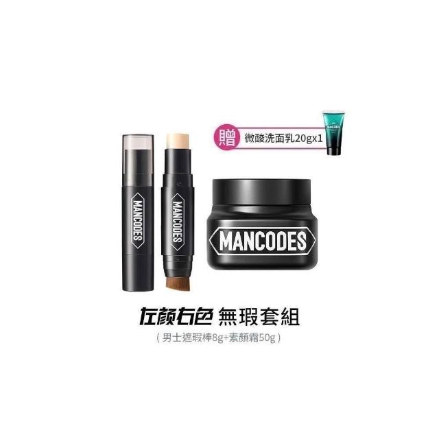 MANCODES 左顏右色無瑕套組(素顏霜/修顏霜/懶人素顏霜/面霜/男士素顏霜/遮瑕棒/修容棒/男士遮瑕筆/潔面乳/洗面奶/潔面奶)