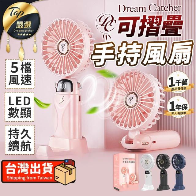 捕夢網摺疊手持風扇 附掛繩+兩用底座+Type-C充電線 隨身風扇