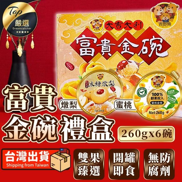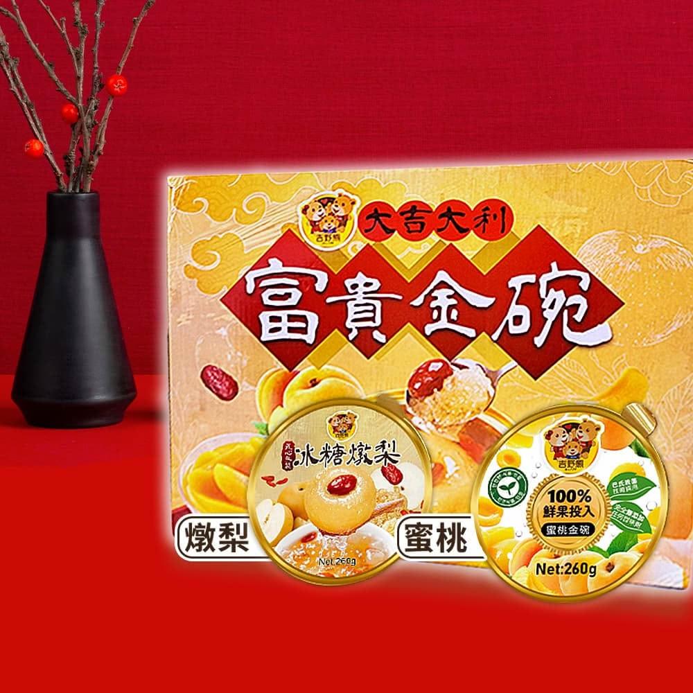 捕夢網吉野熊大吉大利富貴金碗 禮盒 中秋禮盒 伴手禮 水果罐頭 中秋禮盒 水果禮盒 甜點 SGS認證