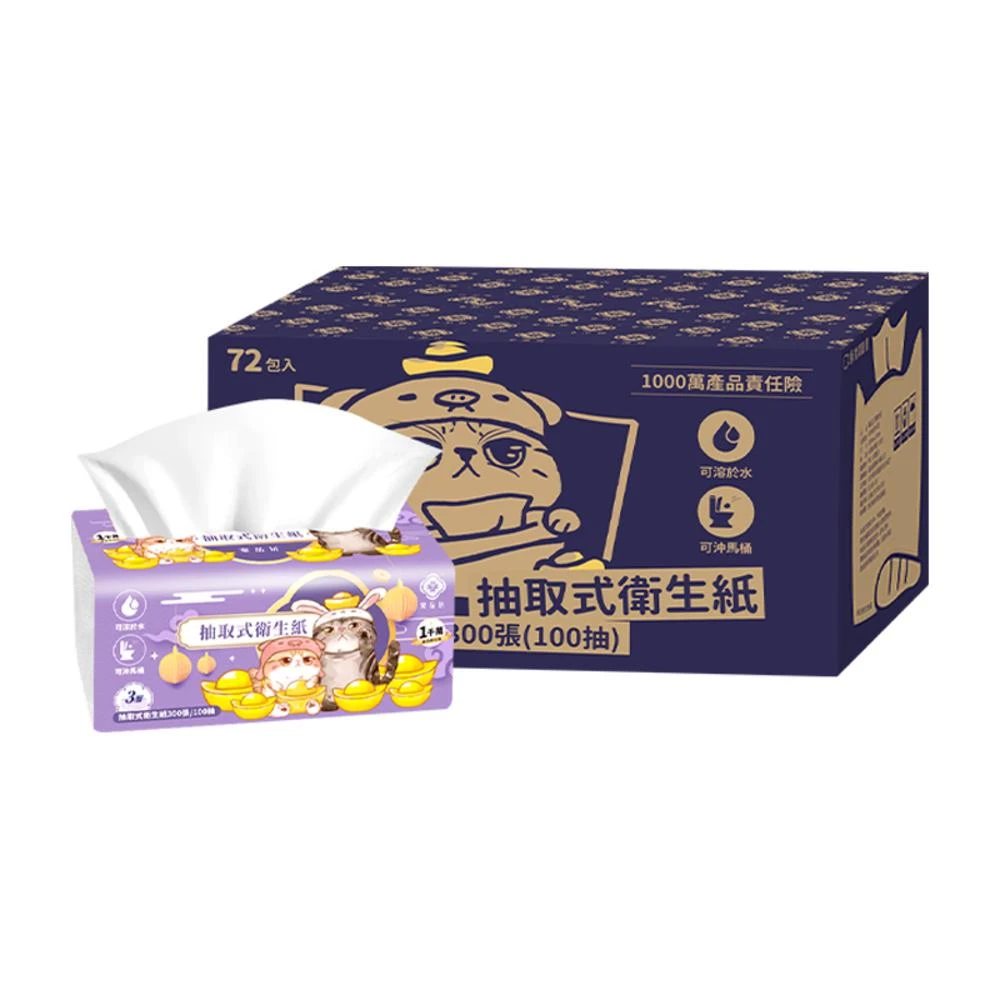 Tan ping home 棠品居三層抽取式衛生紙-100抽x72包/箱購 面紙 紙巾 可沖馬桶