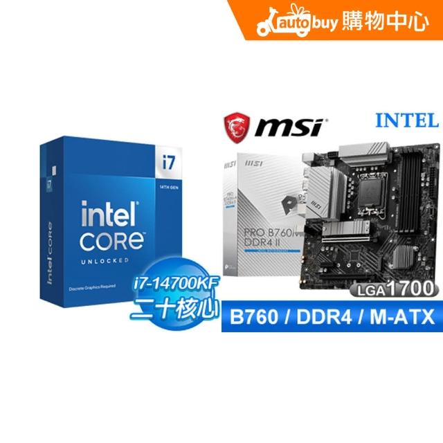 Intel 英特爾《自MO價》i7-14700KF+微星 PRO B760M-A D4 II M-ATX主機板