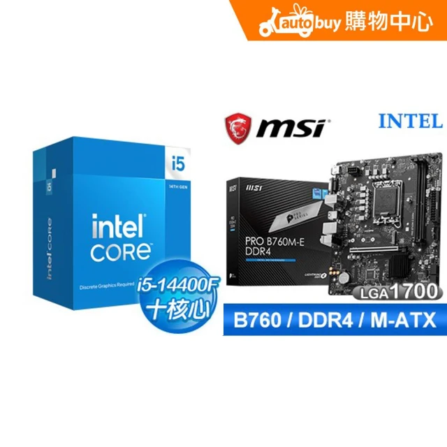 Intel 英特爾《自MO價》i5-14400F+微星 PRO B760M-E D4 M-ATX主機板