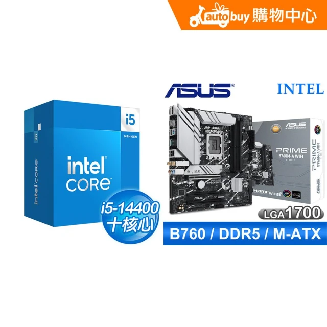 Intel 英特爾〈自MO價〉i5-14400+華碩 PRIME B760M-A WIFI-CSM D5 M-ATX主機板
