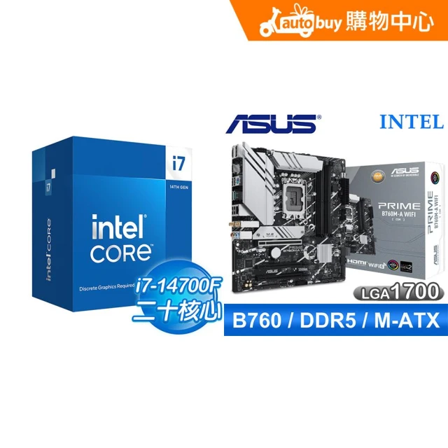 Intel 英特爾〈自MO價〉i7-14700F+華碩 PRIME B760M-A WIFI-CSM D5 M-ATX主機板