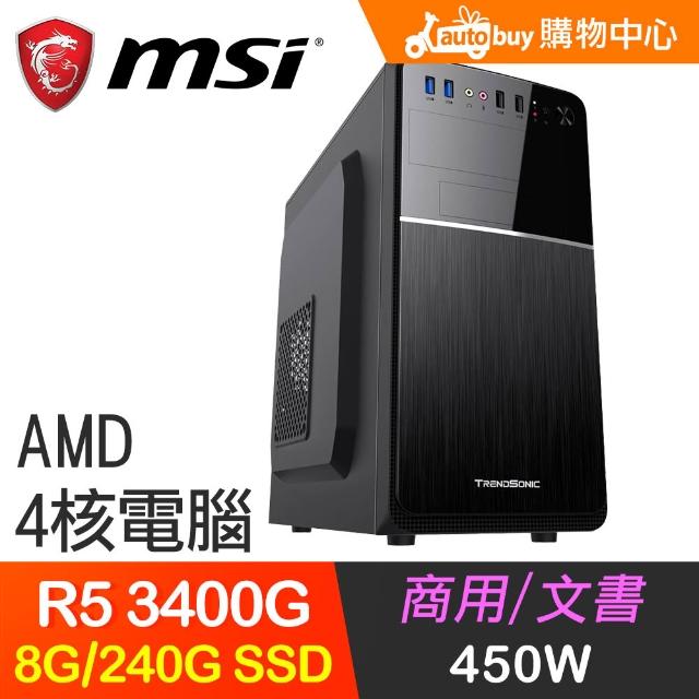 微星平台系列【超值文書】R5 3400G 四核 商務電腦(8G/240G SSD)