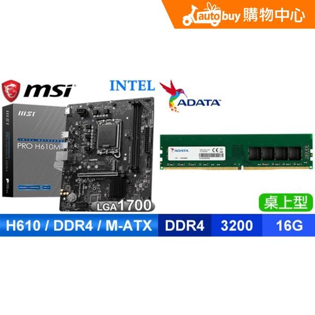 MSI 微星〈限時〉PRO H610M-S D4 M-ATX主機板+威剛 DDR4-3200 16G 記憶體