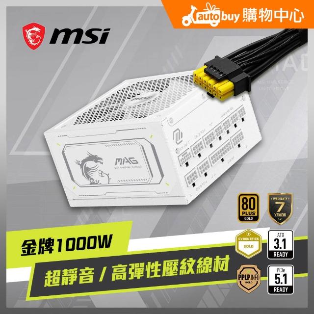 MSI 微星MAG A1000GL PCIE5 WHITE 金牌 全模組 ATX3.1 PCIe 5.1 電源供應器