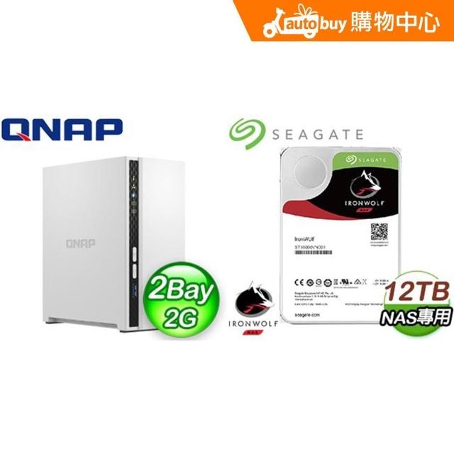 QNAP 威聯通〈自MO價〉TS-233 NAS伺服器+Seagate 那嘶狼 12TB NAS硬碟(X2)