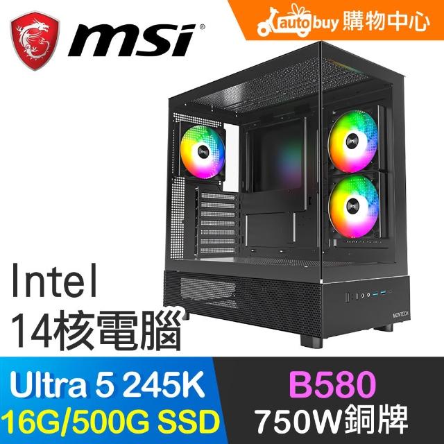 微星平台系列【暗嶽A】Ultra5 245K 14核 B580 電腦主機(16G/500G SSD)