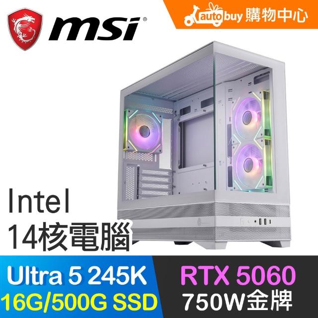 微星平台系列【冰霆B】Ultra5 245K 14核 RTX5060 電腦主機(16G/500G SSD)