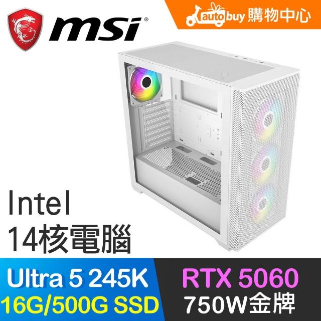 微星平台系列【冰霆C】Ultra5 245K 14核 RTX5060 電腦主機(16G/500G SSD)