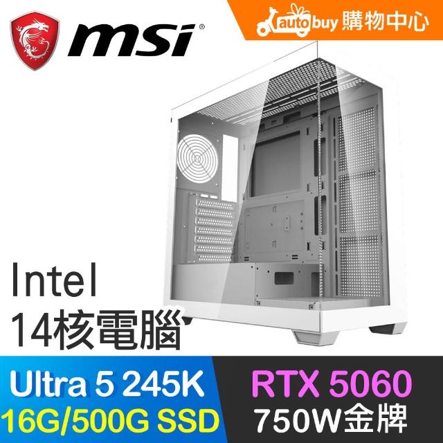 微星平台系列【冰霆D】Ultra5 245K 14核 RTX5060 電腦主機(16G/500G SSD)