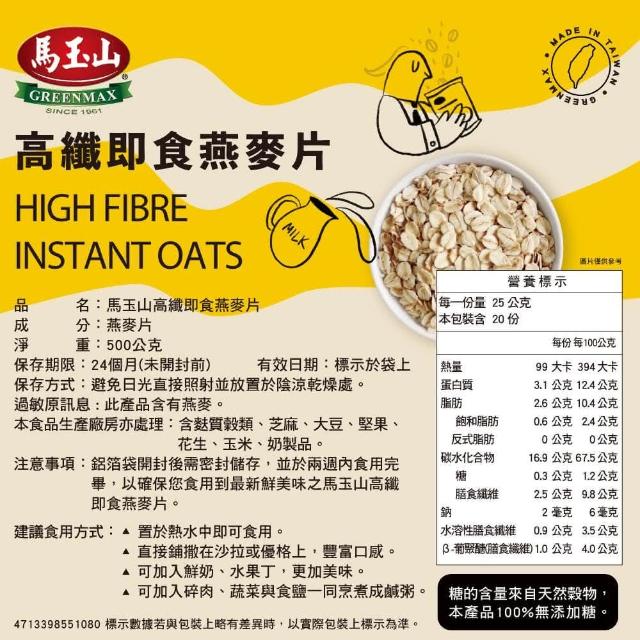 馬玉山馬玉山高纖即食燕麥片500g300g(沖泡飲)