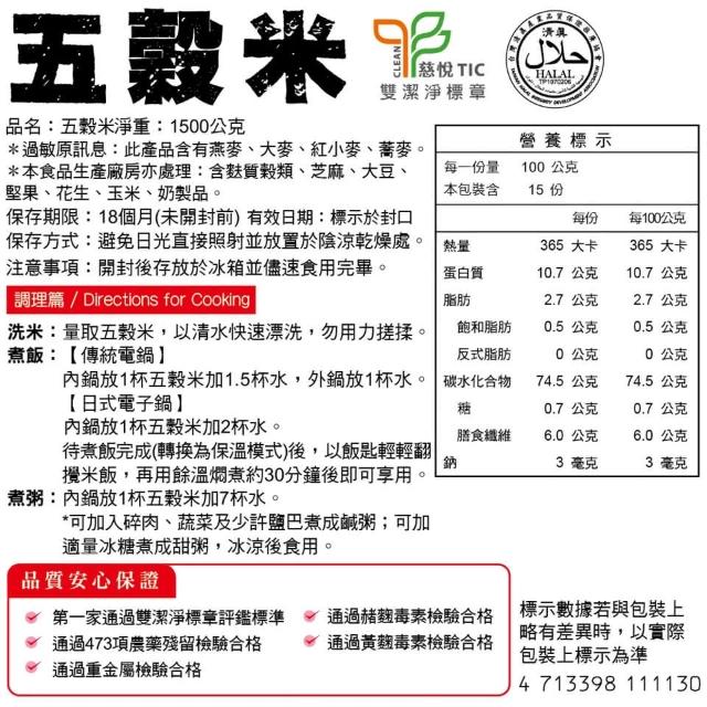 馬玉山馬玉山五穀米1500g 350g 全天然 全素食(食用米)