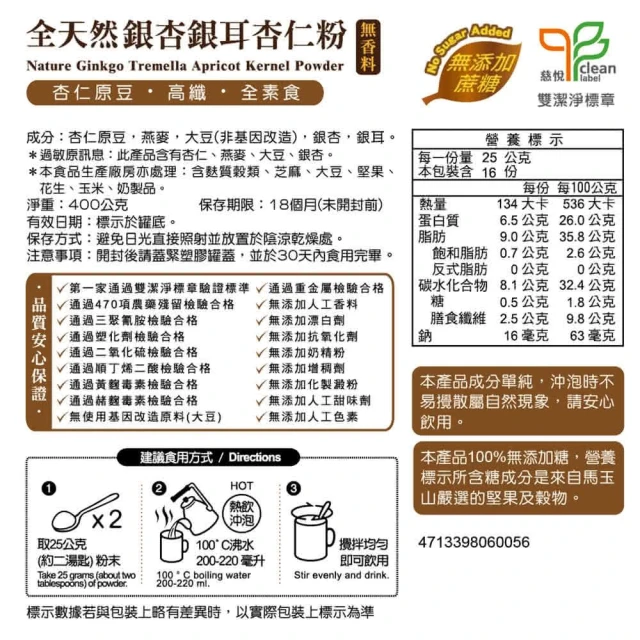 馬玉山馬玉山杏仁粉全系列馬玉山-全天然銀杏銀耳杏仁粉400g(沖泡飲)