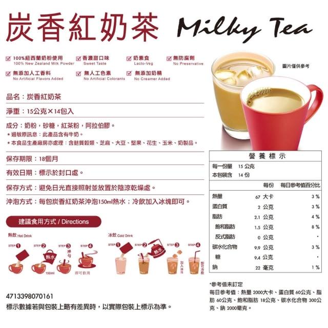 馬玉山馬玉山 抹茶牛奶 炭香紅奶茶15gx14入 沖泡飲品(沖泡飲)