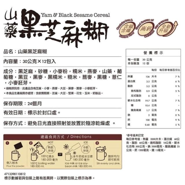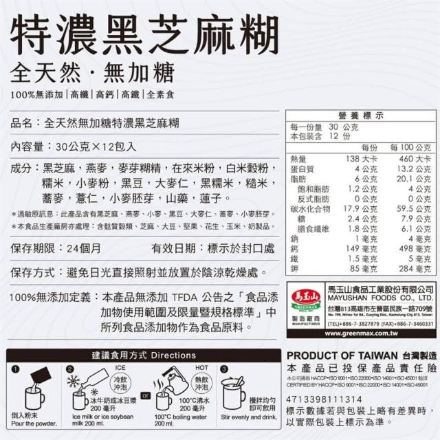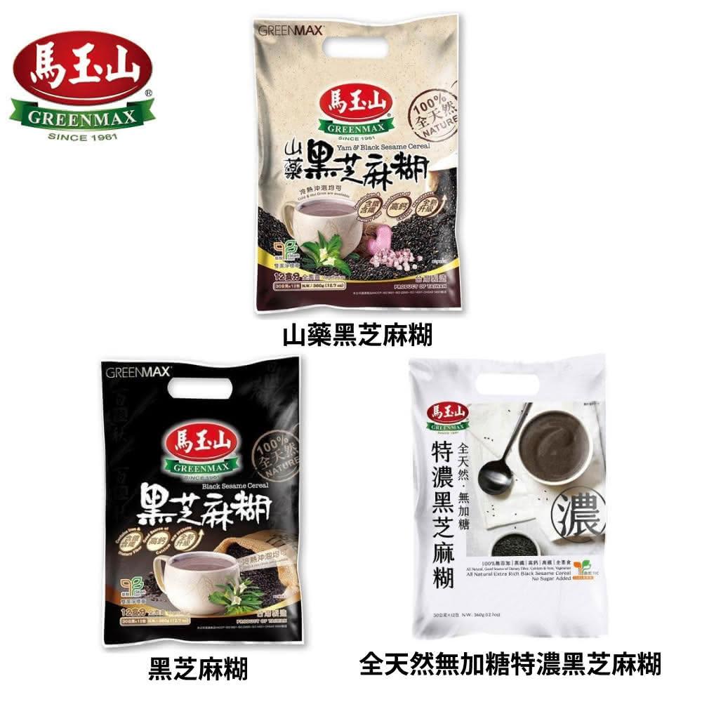 馬玉山馬玉山黑芝麻系列 全天然無加糖特濃黑芝麻糊 黑芝麻糊 山藥黑芝麻糊30gx12包(沖泡飲)