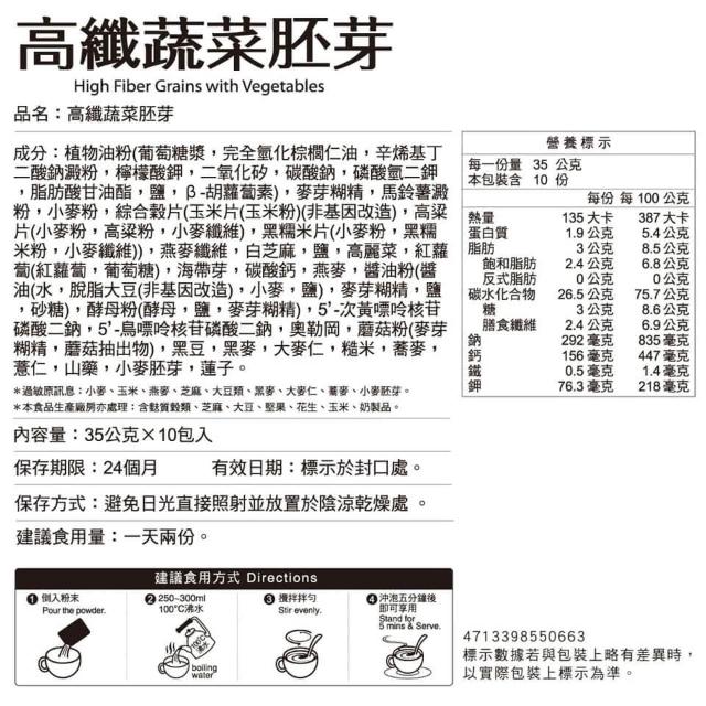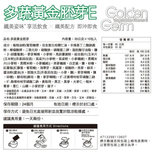 馬玉山馬玉山 山藥五穀粥 高纖蔬菜胚芽 多蔬黃金胚芽E35g×10入 全天然 高纖高鈣(多穀物)