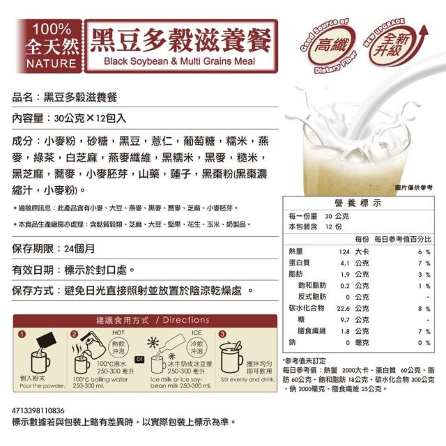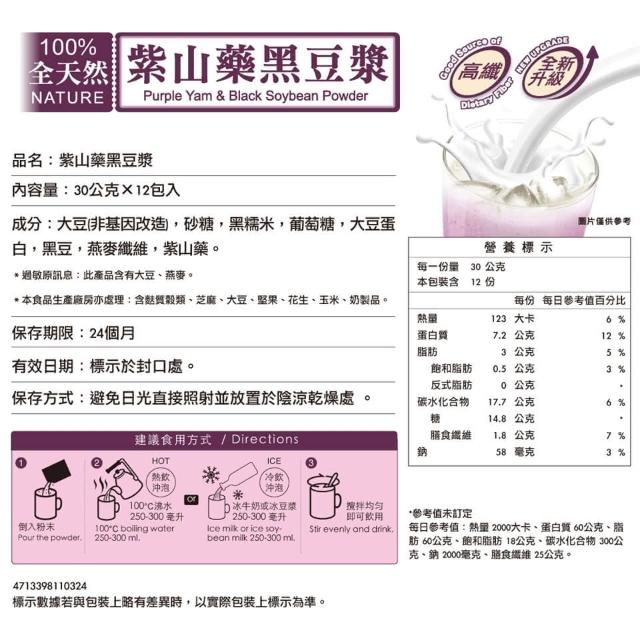 馬玉山馬玉山 紫山藥黑米仁 紫山藥黑豆漿 黑豆多穀滋養餐(30gx12入)沖泡 天然 早餐 【濠氣老闆】