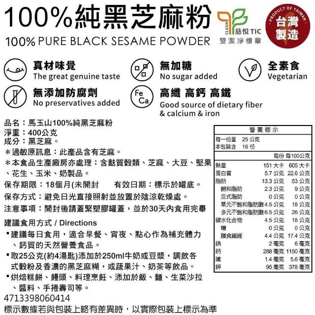 馬玉山馬玉山罐裝100%純黑芝麻粉400g(沖泡飲)